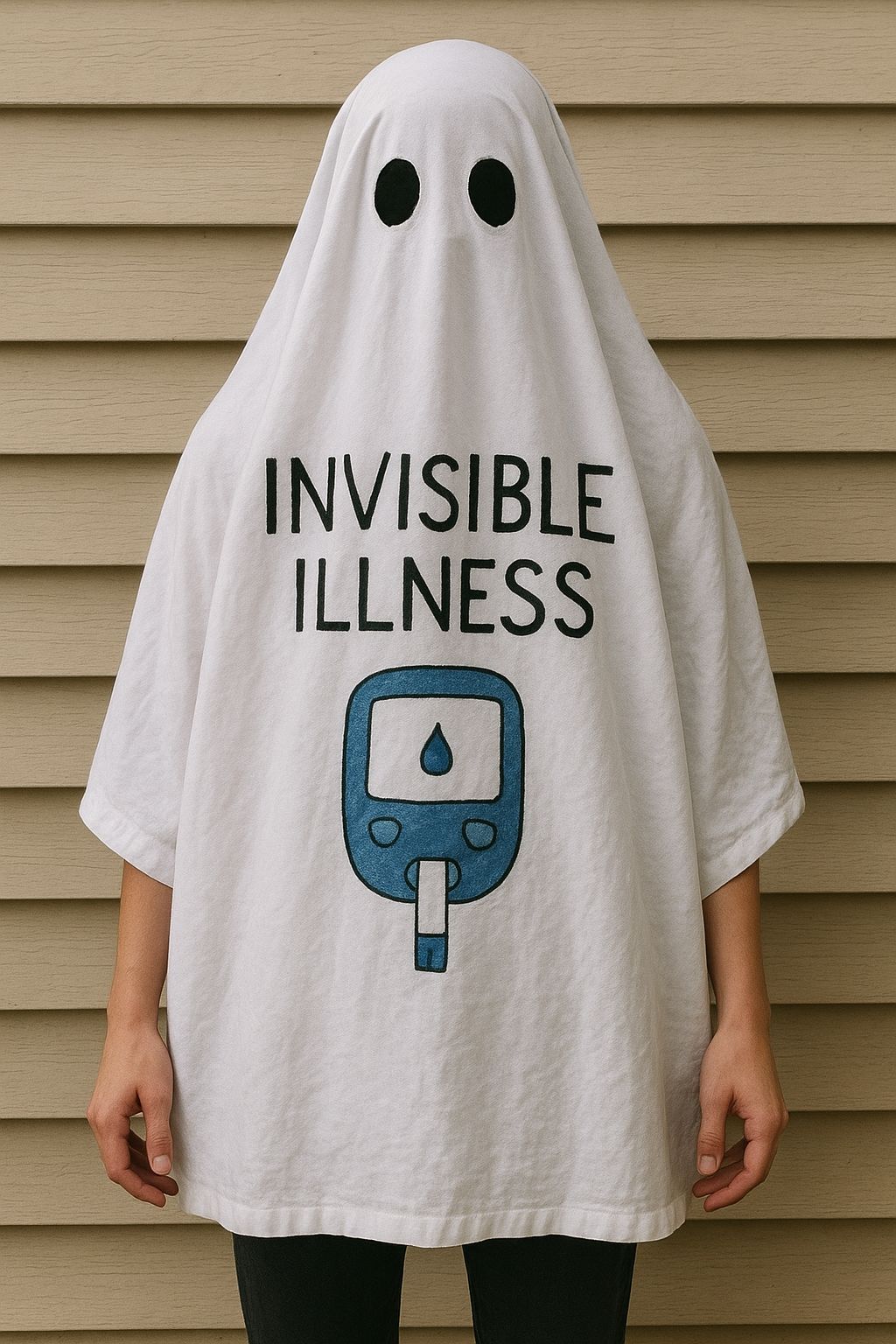 Did you get invited to a last-minute Halloween party? No sweat! Can’t get any easier than a good ol’ sheet ghost! You can spell out “invisible illness” in a thick black marker to help people make the connection to diabetes.