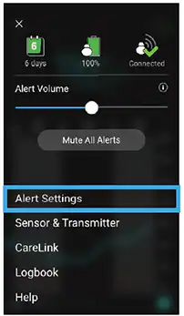 If you feel like you’re receiving too many or maybe not enough alerts related to high and low glucose, you can change your alert settings by going to Menu > Alert Settings. Then tap the Low Alerts and High Alerts settings that you and your healthcare team want to change. You can tap Fall & Rise Alerts, Calibration Reminder, and Snooze Time to turn on and set.